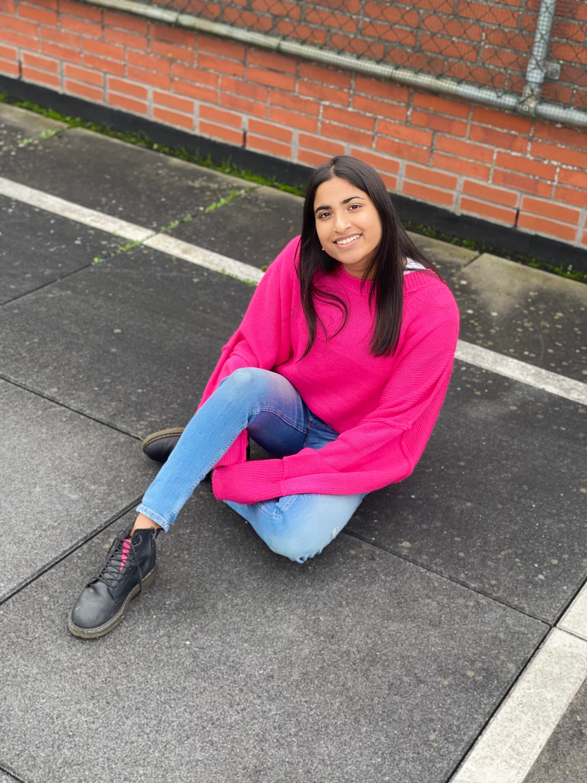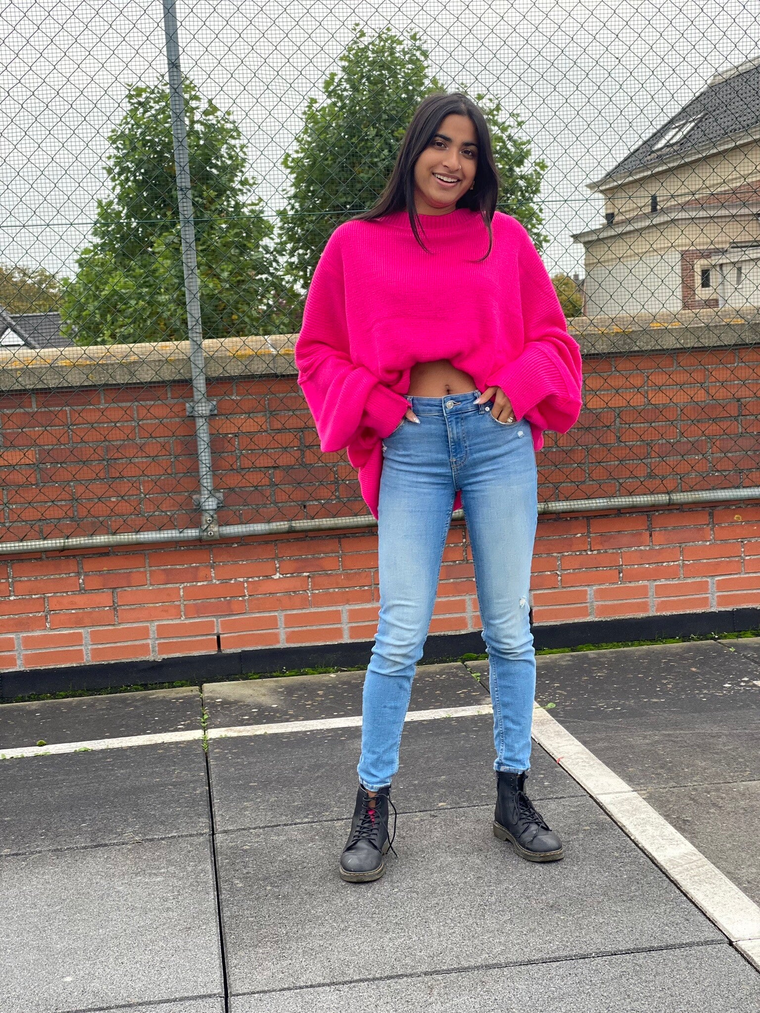 P.S. De trui valt gewoon lang als je hem los laat hangen.